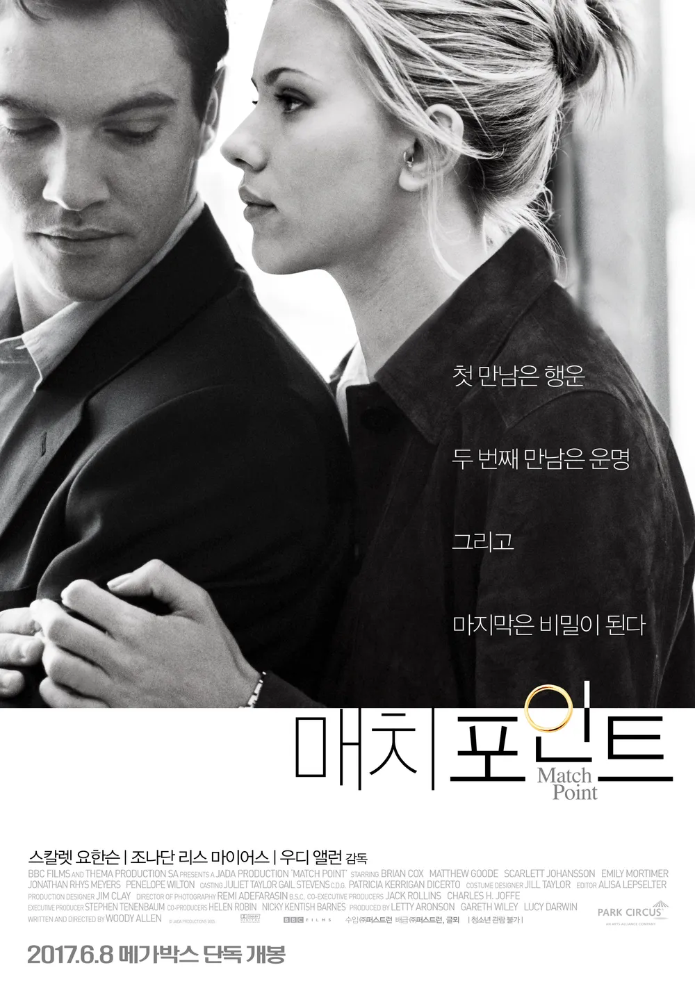 성공하기 위해서는 착하기를 포기해야만 하고, 크리스처럼 철저하게 남들을 속여야만 한다. '매치포인트'는 운명을 거스르기 위해서 악하게 변한 사람에게 모든 책임을 지워야 하는지 의문이 들게 만드는 영화다. 가난한 사람을 악하게 만드는 사회체제가 문제가 아닌가? '매치 포인트'는 이런 의미를 직설적으로 강요하지 않고, 친절하게 들려주는 담백한 영화다. 이 영화는 기존의 우디 앨런의 수다스러운 영화들과 달리 상당히 차분하고 서정적인 장면이 가득한 영화다.