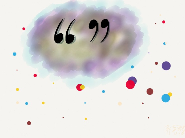 미국 친구들이 수업시간에 토론할 때 가장 많이 취하는 동작이 있다. 말하는 중간에 양손을 들어서 양쪽 검지와 중지를 동시에 두 번 꼬부리는 것이다. 처음에 난 그게 무얼 의미하는지 몰라서 쳐다보기만 했다. 그 손동작은 문장기호 따옴표("")를 형상화한 거라고 들었다. 가끔 그런 손동작 대신에 인용하거나, 강조하는 말 앞에 'quote, unquote'라고 붙이기도 한다. 인용부호가 일상의 대화에도 쓰이는 걸 보고, 문화적 차이라는 걸 느꼈다.